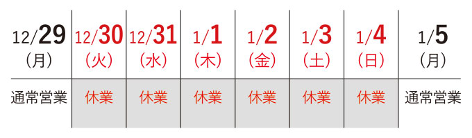 年末年始休業のお知らせ